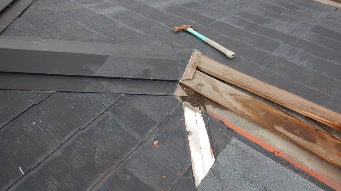 また、屋根勾配が緩い場合ですと、強風で雨水が木材まで流れてしまい、木材が腐食して棟板金が飛ばされてしまうというケースもあります。