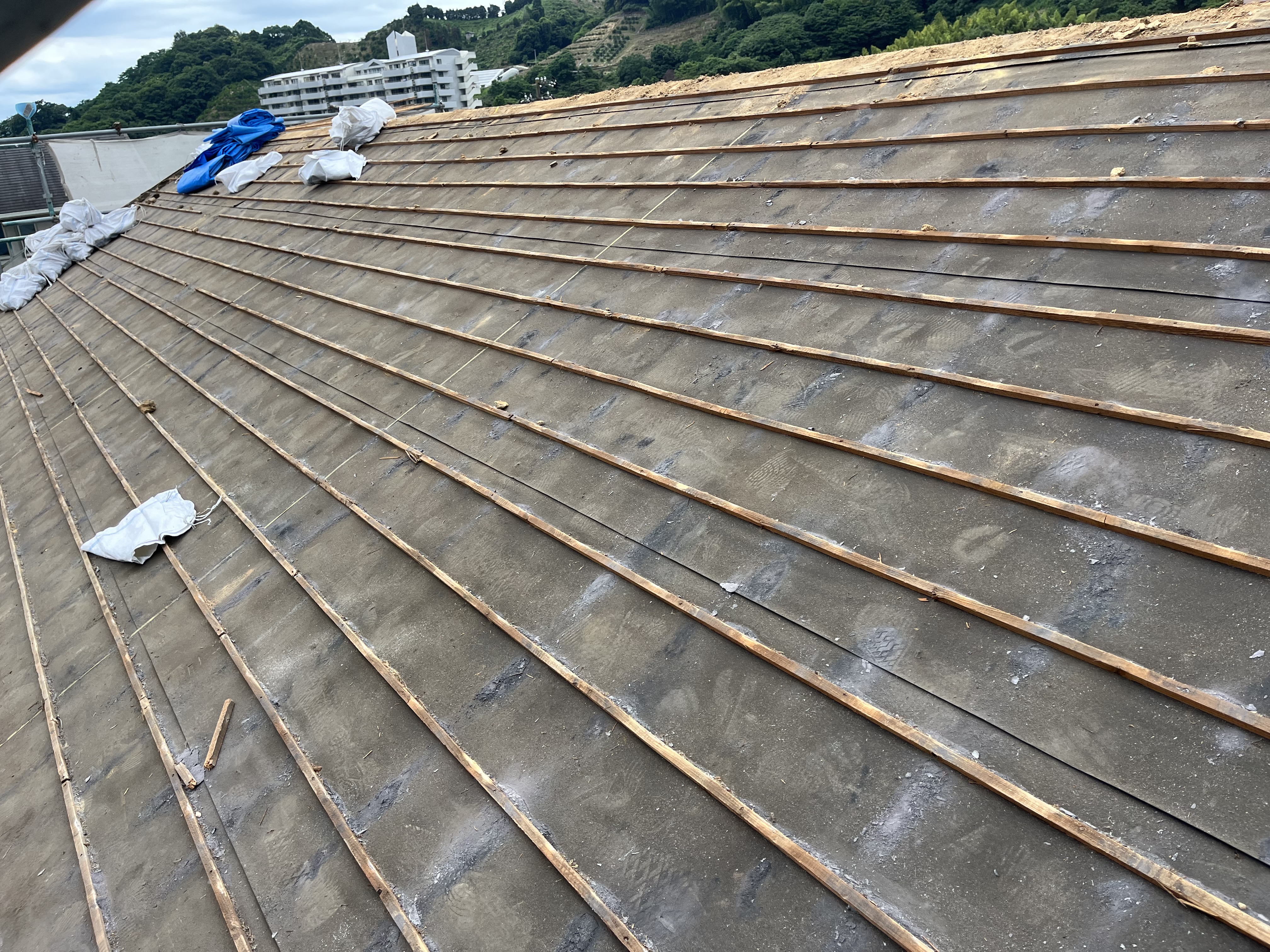 モニエル瓦から平板陶器瓦への葺き替え工事